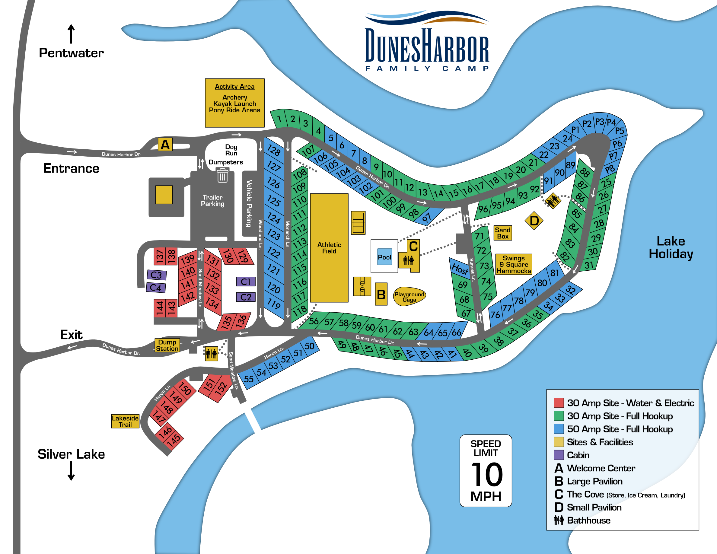 Check out some pictures of the sites, buildings, and facilities at Dunes Harbor Family Camp!